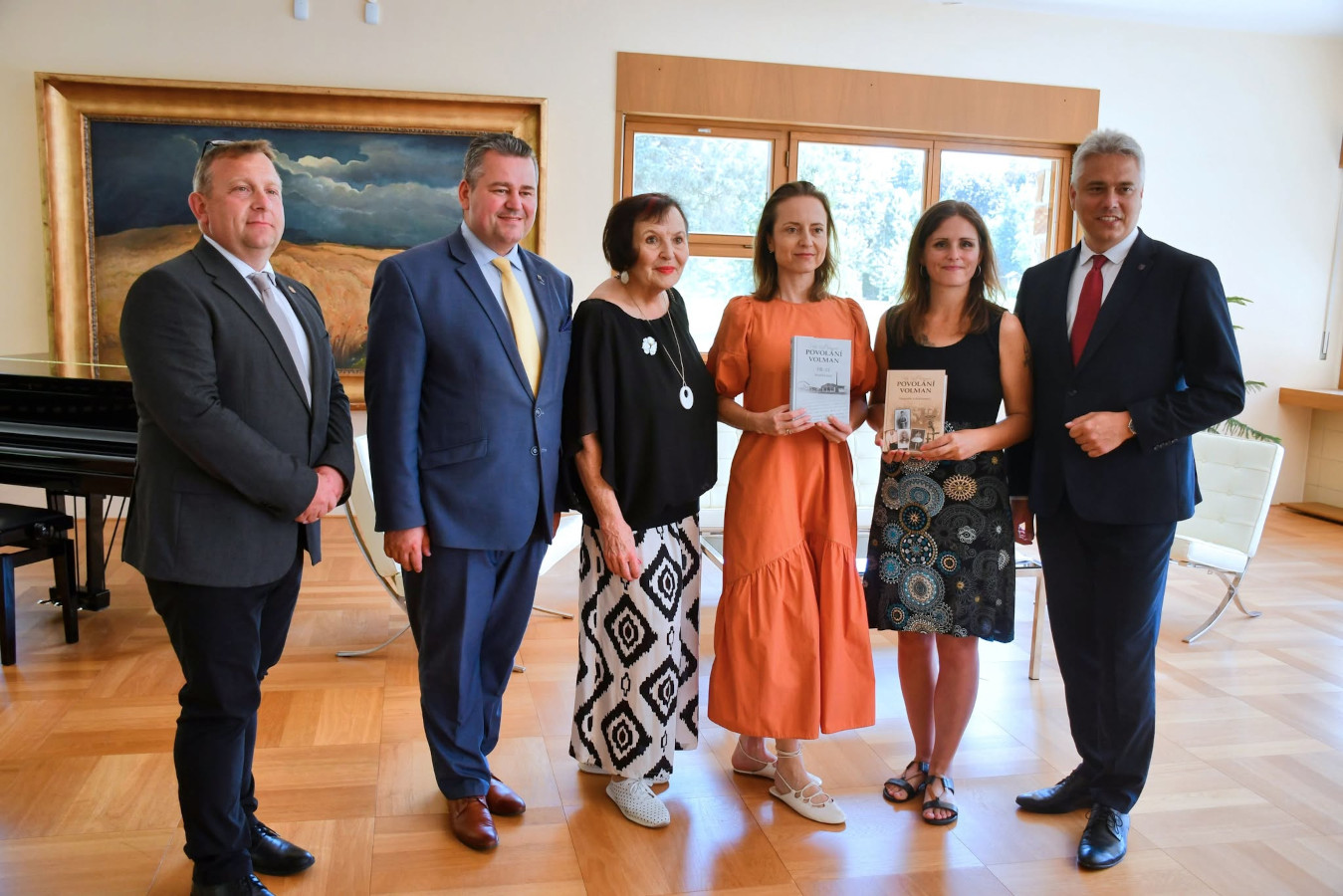 | Jarmila Volfová *1947, bytem Čelákovice, zleva třetí. Radní města, podnikatelka. | . | v Žebráku spolu se starostou Pátkem zastupovala město na oslavách rodu Volmanů
