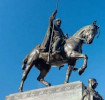 socha na Prašné bráně v Praze. byl pátý český král, moravský markrabě, rakouský vévoda, štýrský vévoda, korutanský vévoda a kraňský markrabě z rodu Přemyslovců. Narodil se jako syn českého krále Václava I. a jeho manželky Kunhuty Štaufské. Přemyslův otec král Václav I. se ke sklonku života obklopil úzkou skupinou svých oblíbenců, stále více se izoloval od veřejného života a začaly se u něj projevovat podivínské vlastnosti. Hlavní příčinou změny jeho chování byl především skon jeho prvorozeného syna, moravského markraběte a rakouského vévody Vladislava v lednu 1247,[13][14] kterému coby následníkovi trůnu král věnoval velkou pozornost. Tu naopak poněkud upíral mladšímu, ale ambicióznímu Přemyslu Otakarovi. Dne 22. září 1253 náhle zemřel Václav I. Přemysla tato zpráva zastihla v Rakousích, do Čech přijel až za měsíc.Jeho nástup na český trůn proběhl hladce a bez problémů. V letech 1254 až 1255 se Přemysl účastnil křížové výpravy do Pruska, kterou zorganizoval olomoucký biskup Bruno ze Schauenburku. Z kanceláře bamberského biskupství přišla na jaře roku 1255 Přemyslu Otakarovi výzva aby kandidoval na římskoněmeckého krále. Účastnil se několika bitev. Zestárlá Markéta Přemyslovi nemohla dát dědice. Přemysl měl pouze nemanželské potomky a ty nemohli mít nárok na trůn. Přemysl se rozvedl a vzal si sedmnátiletou dceru Kunhutu haličského knížete Rostislava z rodu Rurikovců. Společně byli korunováni v katedrále svatého Víta. 1270-1272 byla třetí česko-uherská válka. 1272-1274 čtvrtá česko-uherská válka. Přemysl Otakar II. padl v bitvě na Moravském poli 26. srpna 1278