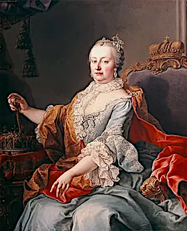 *13.5.1717 Vídeň, zemřela 29.11.1780, Vídeň. Arcivévodkyně rakouská, královna uherská, královna česká a markraběnka moravská. Jediná vládnoucí žena na českém trůnu. Jejím manželem byl Štěpán Lotrinský. O smrti manžela r.1765 se dozvěděla od svého nejstaršího syna Josefa II. S jeho smrtí se nedokázala vyrovnat a po zbytek života chodila v černém a své šperky rozdala dcerám. 1774 zavedla povinnou školní docházku. 1753–1775 iniciovala rozsáhlou přestavbu Pražského hradu do jeho současné podoby. Měla 16 dětí. Život měla komplikovaný, trvale těhotná prožila řadu válek a nakonec ztratila jen Slezsko. Marie Terezie se nikdy nevyrovnala se ztrátou Slezska. Snažila se pro jeho opětné získání o podporu Francie. To se nepovedlo. Spolu se svým synem Josefem II. zavedli řadu významných reforem, ač jejich vztah byl často napjatý. Byly očíslovány domy, sepsání obyvatelé, pozemky, upřesněna pravidla pro psaní matrik, zavedeno dědičné příjmení, pravidla pohřbývání, požární ochrany atd.